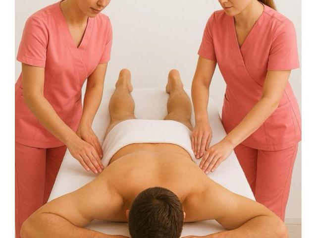 2 terapeutas jóvenes, simpáticas, realizamos masajes a 4 manos de manera